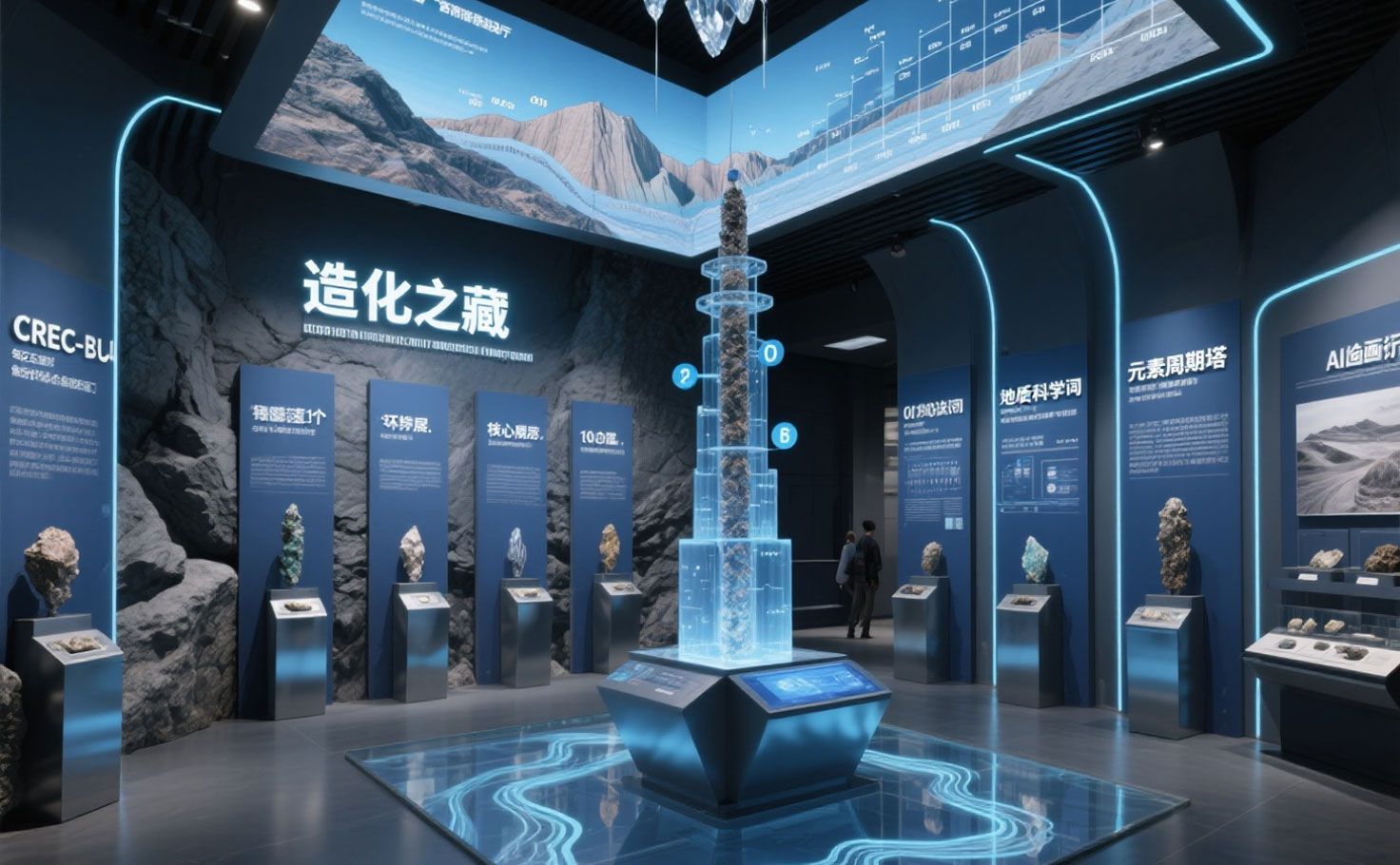 展廳設計公司以“科技賦能 點石成金”為核心理念,突破傳統(tǒng)礦業(yè)展示的厚重印象,融合工業(yè)美學、數字交互與地質藝術,構建了一座集“國家資源戰(zhàn)略展示、礦業(yè)科技探索、企業(yè)使命傳遞”于一體的中鐵礦產資源展廳。部分展項展示:
