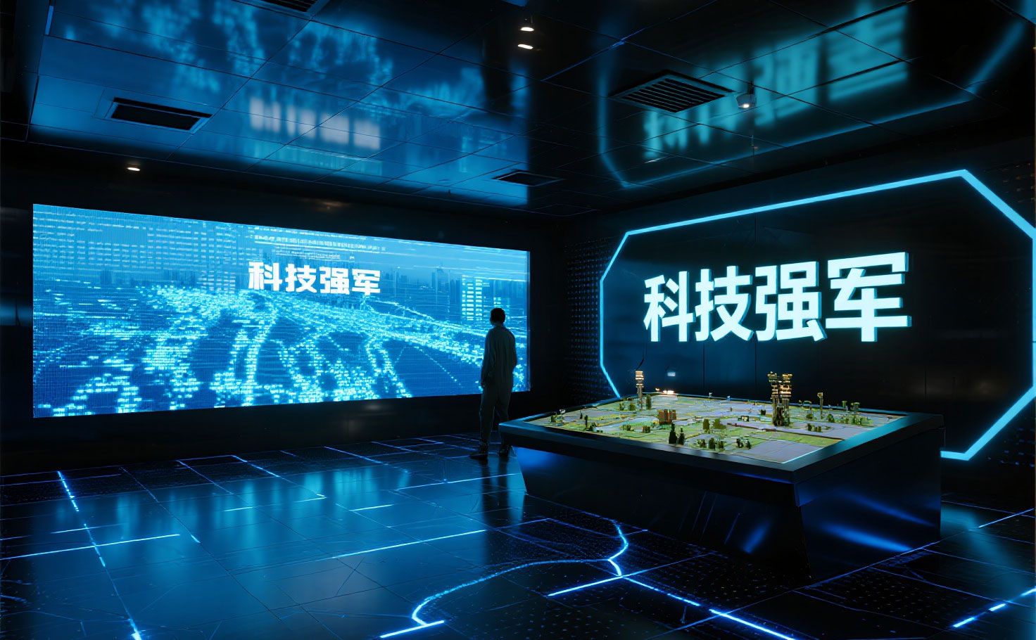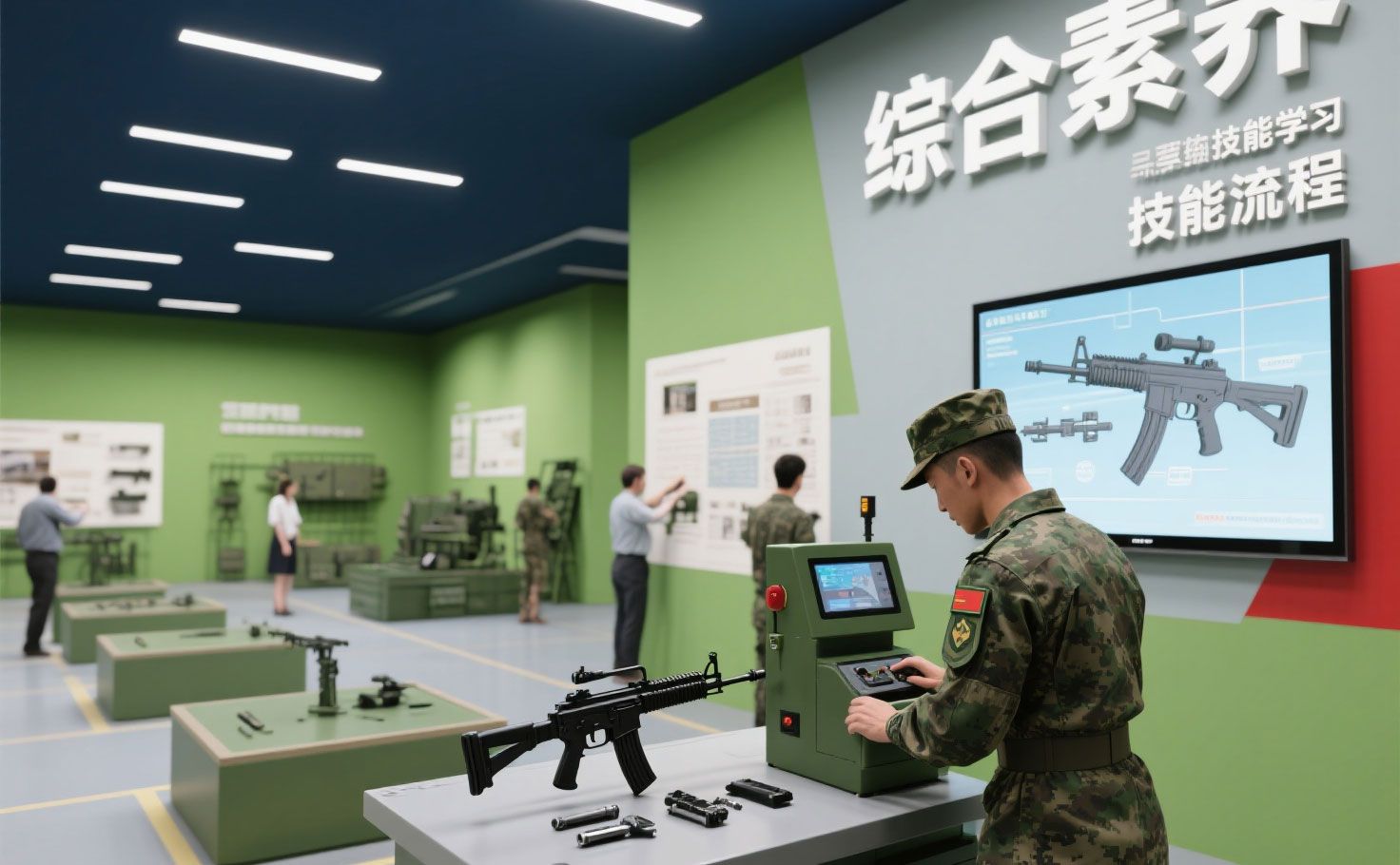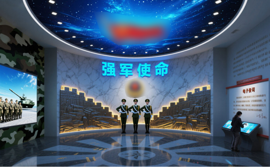 國防科技區(qū)聚焦科技強軍,展示前沿軍事技術。入口設計為鏡面與LED燈帶構成的科技時光隧道。中心展項為大型數(shù)字沙盤,通過激光觸控動態(tài)演示多環(huán)境作戰(zhàn)模擬,定期舉辦沙盤推演活動。VR/AR體驗區(qū)提供單兵作戰(zhàn)、裝備操作與多人協(xié)同等虛擬實戰(zhàn)體驗。創(chuàng)新展區(qū)通過交互模型直觀展示人工智能、量子等技術的軍事應用,環(huán)幕影片激發(fā)對未來戰(zhàn)爭的思考。本區(qū)域由頂尖展廳設計公司規(guī)劃,集科普、互動與前瞻于一體,彰顯科技對現(xiàn)代國防的關鍵作用。