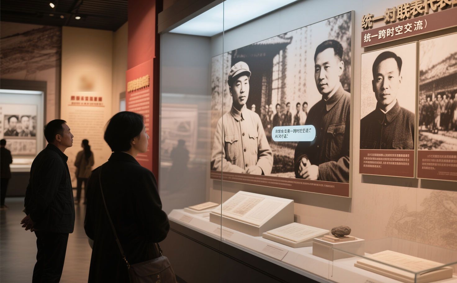 全息劇場還原歷史場景與人物語錄,AI對話實(shí)現(xiàn)與先輩“跨時(shí)空交流”。致敬空間供觀眾緬懷先烈。展廳設(shè)計(jì)公司以創(chuàng)新手法塑造沉浸式人物敘事,彰顯統(tǒng)一戰(zhàn)線代表人士的風(fēng)范與貢獻(xiàn)。