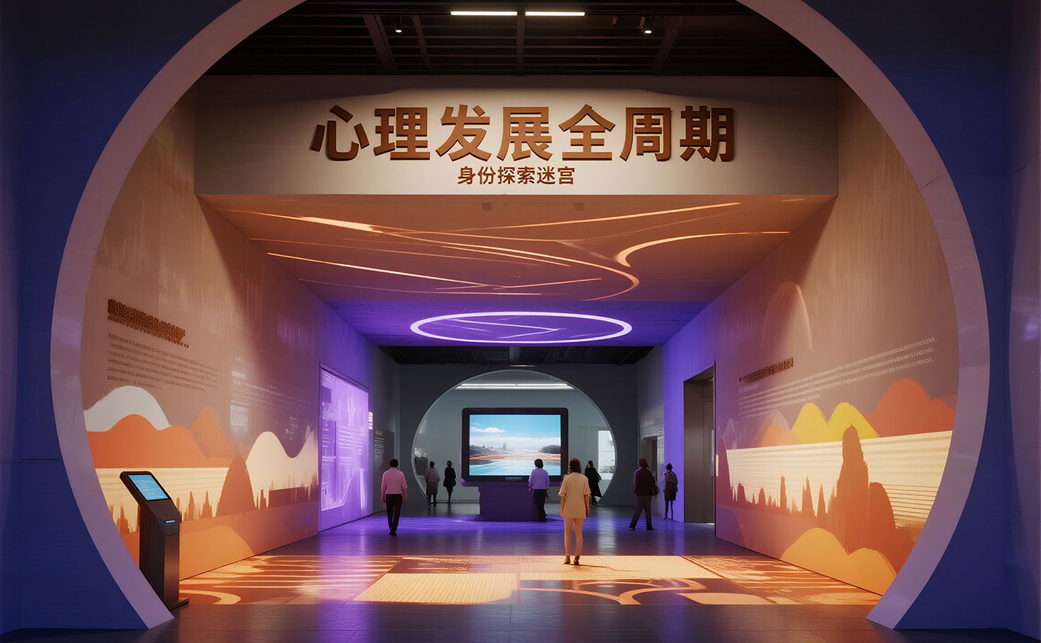 該展區(qū)以“人生旅程”為主線,劃分為嬰幼兒期、兒童期、青春期、成年期與老年期五大板塊,通過場景還原與互動裝置呈現(xiàn)各階段心理特點與挑戰(zhàn)。青少年區(qū)設(shè)置“身份探索迷宮”,成年區(qū)展示壓力與家庭關(guān)系調(diào)節(jié),老年區(qū)提供老齡化心理模擬體驗。展廳設(shè)計公司以人性化理念構(gòu)建沉浸式敘事空間,引導(dǎo)觀眾理解心理健康貫穿生命全程。