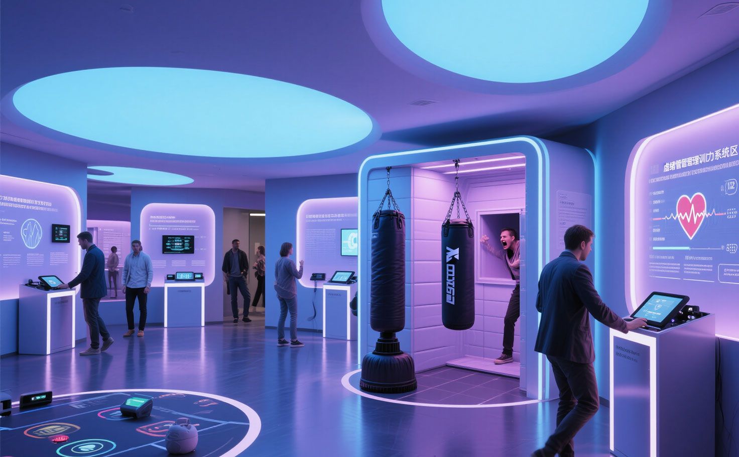作為互動性極強的展區(qū),融合VR情緒訓(xùn)練、生物反饋裝置及情緒宣泄設(shè)施,幫助觀眾在虛擬場景與實時數(shù)據(jù)中學(xué)習(xí)情緒管理。“壓力轉(zhuǎn)化工坊”通過游戲教授壓力轉(zhuǎn)為動力的方法。該心理健康展館以科技手段提升參與感,助力觀眾在體驗中掌握調(diào)節(jié)技巧。